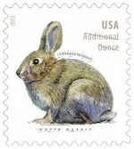 In 2021, the United States Postal Service issued a new non-denominated additional-ounce stamp. It was printed in two formats ¨C a pane of 20 and coil of 100 ¨C and pictured a brush rabbit. The stamp design featured existing artwork by designer and illustrator Dugald Stermer. Stermer was well known for his pencil and watercolor techniques, and was fond of painting flora and fauna.