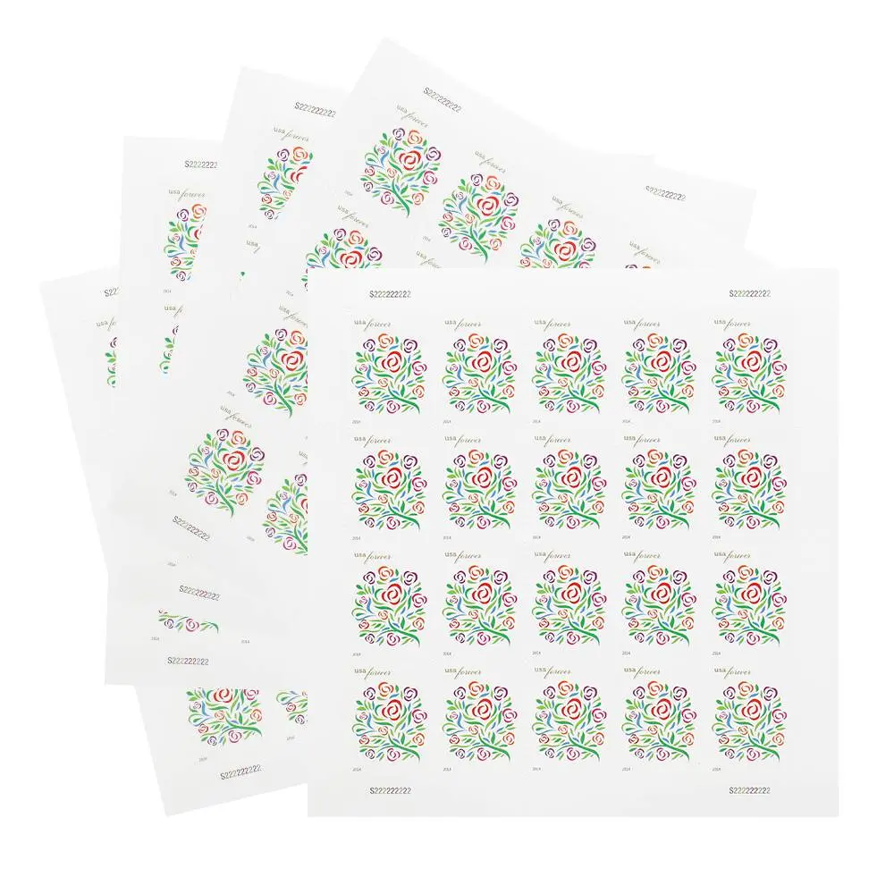 As with the “Yes I Do” Heart of Roses stamp, the “Where Dreams Blossom” Wedding Bouquet stamp was designed by Ethel Kessler using an illustration by Michael Osborne. This stylized bouquet stamp was issued for use on the save-the-date notices, response cards, and thank-you notes.