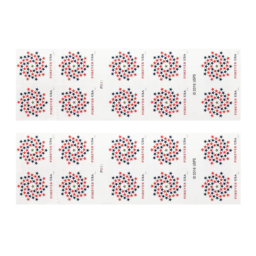 Whether you’re a stamp collector, a patriot, or someone looking for a unique and visually impactful stamp design, the Patriotic Spiral Forever Stamps provide a striking representation of American pride, embodying the enduring ideals and unity of the nation.