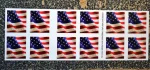 With the new U.S. Flag stamp, the Postal Service™ continued its tradition of celebrating patriotism with one of the most recognizable symbols of the nation. The stamp, sold in booklets of 10 and 20, coils of 100, and an ATM sheetlet of 18, featured a detail from a photograph of the billowing Stars and Stripes. Terrence W. McCaffrey was the art director of the project, and Greg Breeding designed the stamp with an existing photograph of the flag taken by Tom Grill.