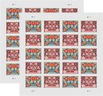About the stamp design:  Pictures graphic illustrations of flowers inspired by European folk art.  Shows twisting vines, small flowers, and abstract heart shapes.  The stamp has a powder blue background.