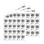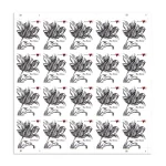 Jeanne Greco designed the Vintage Tulip stamp using drawings from engraved plates made by Maria Sibylla Merian (1647-1717), a naturalist artist. Greco added a small, dark red heart for a touch of color. This stamp was printed using engraving, unlike most modern stamps that are lithographed.